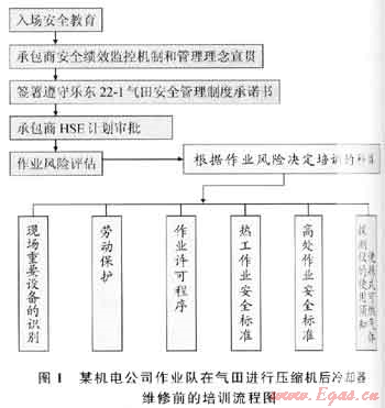 圖1是某機(jī)電公司作業(yè)隊(duì)2010年7月在氣田進(jìn)行壓縮機(jī)后冷卻器維修前的培訓(xùn)流程。