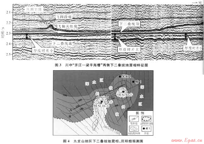 川西九龍山地區(qū)下二疊統(tǒng)棲霞組、茅口組為典型的碳酸鹽緩坡沉積環(huán)境,沉積環(huán)境主要受下伏志留系相對(duì)淺水和深水古環(huán)境的控制。探索性地采用地震相與沉積相的綜合解釋技術(shù),預(yù)測(cè)高能灘發(fā)育的有利區(qū)域。通過(guò)地震相分析,下二疊統(tǒng)內(nèi)部地震反射時(shí)間厚度異常增加,反射同相軸增多,底界明顯超覆于志留系上,3種不同的地震相特征表明下二疊統(tǒng)為志留系殘余古高地繼承性沉積,古地貌特征決定了本區(qū)高能灘的有利發(fā)育區(qū)。利用3種地震相特征綜合分析,預(yù)測(cè)了高能灘發(fā)育的有利區(qū)域,經(jīng)實(shí)鉆證實(shí),地震相與沉積相分析方法能提高下二疊統(tǒng)高能灘儲(chǔ)層的鉆探成功率。