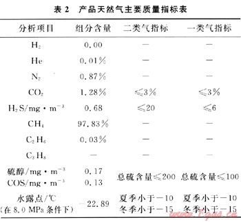 針對高含硫、含碳天然氣的凈化新工藝技術(shù)在普光氣田得到成功的應(yīng)用。從2009年10月普光天然氣凈化廠第一聯(lián)合裝置順利投產(chǎn)以來,目前全廠6套聯(lián)合裝置均已開車成功,裝置運行平穩(wěn),主要工藝技術(shù)指標(biāo)、產(chǎn)品質(zhì)量指標(biāo)達到設(shè)計要求,硫磺回收率高于99.8%,尾氣排放中S02低于960mg/m3,滿足GB 16297—1996環(huán)保要求。運行1年多來,凈化天然氣產(chǎn)品質(zhì)量超過了設(shè)計要求的《天然氣》(GB 17820—1999)二類氣標(biāo)準(zhǔn),達到一類氣標(biāo)準(zhǔn)。目前的產(chǎn)品氣技術(shù)質(zhì)量指標(biāo)見表2。