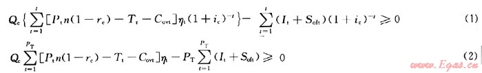 1) 單井初期產(chǎn)量界限。當(dāng)新鉆井初期產(chǎn)量大于該界限值時,經(jīng)濟(jì)上才是可行的。應(yīng)同時滿足以下關(guān)系式: