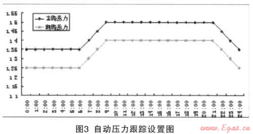 該功能可以預(yù)輸入最多4條壓力曲線,在不同的季節(jié)或者時(shí)間段選擇不同的壓力自動(dòng)跟蹤曲線。
