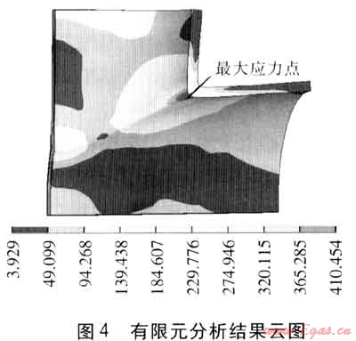 進行求解并查看求解結(jié)果過程,分別計算出內(nèi)壓為0.4MPa和4.0MPa時材料的最大主應(yīng)力為41.045MPa和410.454MPa。