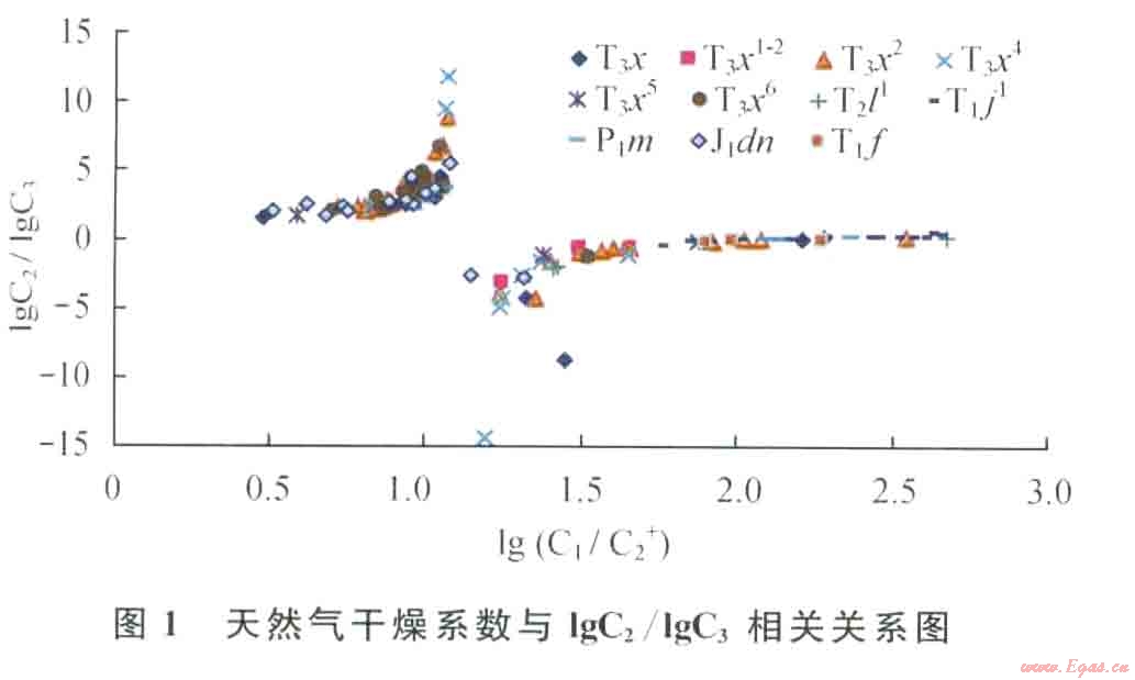 須家河組的天然氣分析資料點大多數(shù)落入成熟煤系天然氣的分布區(qū)間及其邊緣,展示了須家河組烴源巖以(偏腐殖混合型一腐殖型)干酪根為主的自生天然氣的特征。但在九龍山、扁l井等局部地區(qū)須家河組和侏羅系部分天然氣分析資料點落人高熟混源氣及過熟熱裂解氣的分布區(qū)間,表明該區(qū)侏羅系和上三疊統(tǒng)氣藏可能有深部氣源層對其成藏的貢獻[5](圖2)。