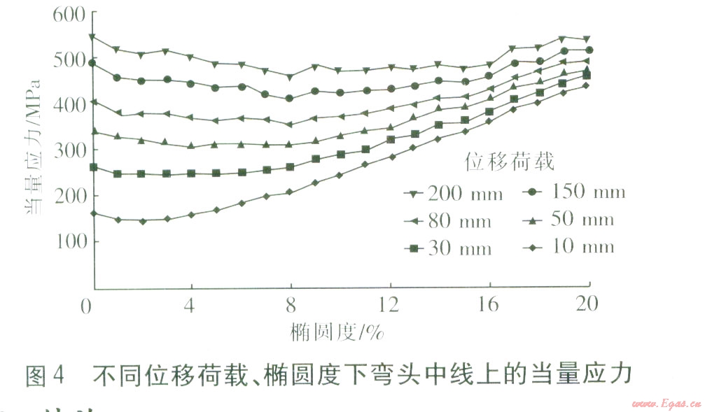 彎頭具有一定的橢圓度可以降低彎頭應(yīng)力,橢圓度控制在8%是合理的,若嚴格限制在6%以下,既增大成本又提高了彎頭的應(yīng)力。