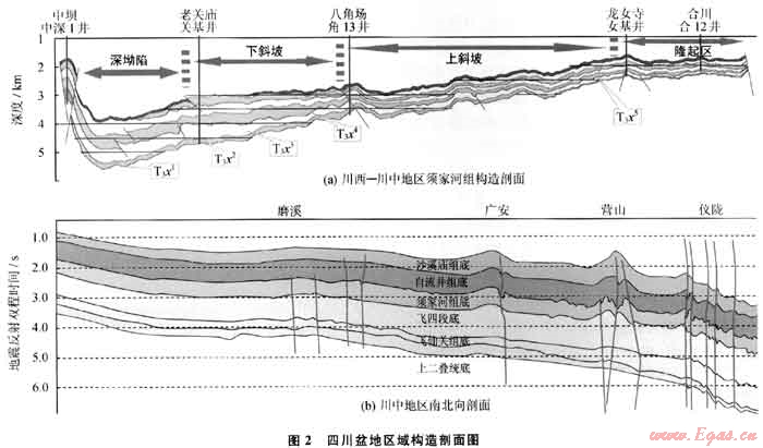 勘探已證實(shí)四川盆地須家河組天然氣資源豐富,以致密砂巖氣藏為主,含氣面積大、儲(chǔ)量規(guī)模大,同時(shí)存在含水飽和度偏高、開(kāi)發(fā)動(dòng)用難度大等難題。加強(qiáng)氣水分布主控因素和天然氣富集“甜點(diǎn)”區(qū)塊預(yù)測(cè)是當(dāng)前勘探開(kāi)發(fā)面臨的重要課題。筆者認(rèn)為加強(qiáng)須家河組構(gòu)造研究是解決上述難題的重要途徑。
