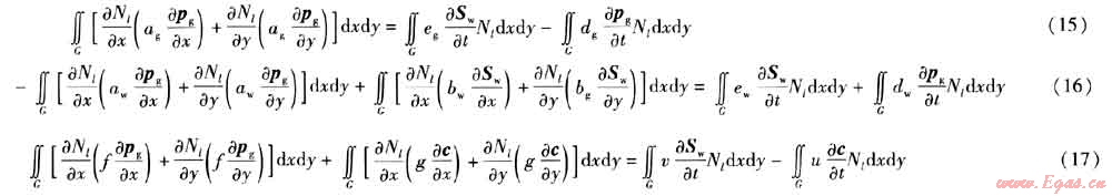 式(15)~(17)為二維氣水滲流及氣體擴散有限單元法計算的基本方程。