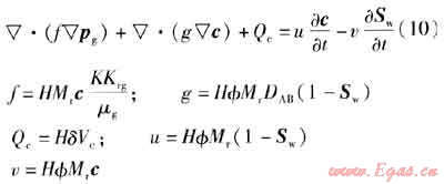 將氣水滲流連續(xù)性方程、運動方程、氣體狀態(tài)方程、飽和度平衡方程以及毛管壓力方程整理后,得到氣水兩相滲流方程為: