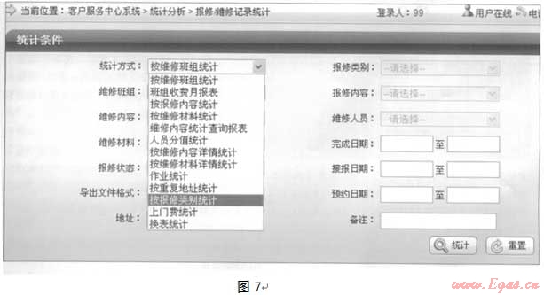 對報修記錄、咨詢記錄、投訴記錄、維修記錄、回訪記錄的統(tǒng)計。