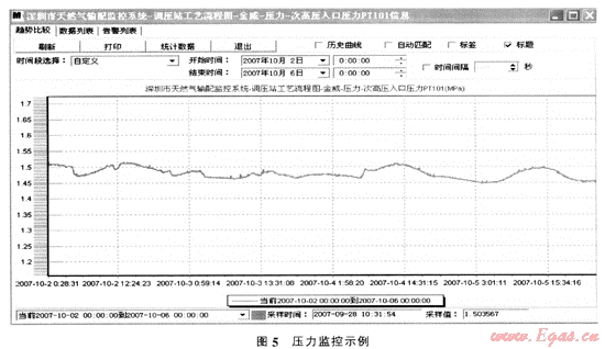 從圖5中可見.在3天內(nèi)壓力從1.51MPa降至1.45MPa,存在微漏,通知場(chǎng)站運(yùn)行部檢查,發(fā)現(xiàn)進(jìn)站閥門法蘭處微漏。