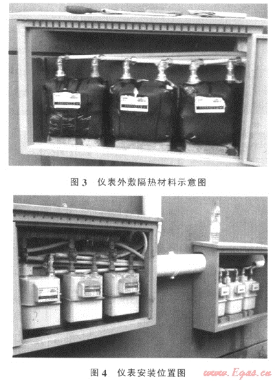 2008年11月,我們經(jīng)過反復(fù)查找,最后在紅河熙園選取了6戶戶外掛表用戶,這些用戶具有以下優(yōu)越性:①壁掛爐用戶,冬季用氣量大,便于統(tǒng)計計算;②用戶位置相近,方便儀表安裝,使用表箱簡單;③是近期發(fā)展的用戶,儀表和管道比較新;④地理位置較佳,方便每天抄表記錄。