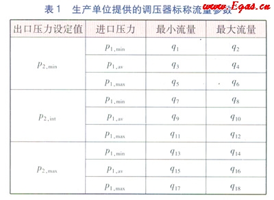 生產(chǎn)單位提供的調(diào)壓器的標(biāo)稱流量參數(shù)見表1。表1中的p2,int為調(diào)壓器的標(biāo)稱中間出口壓力設(shè)定值,p1,av為調(diào)壓器的標(biāo)稱平均進(jìn)口壓力值。
