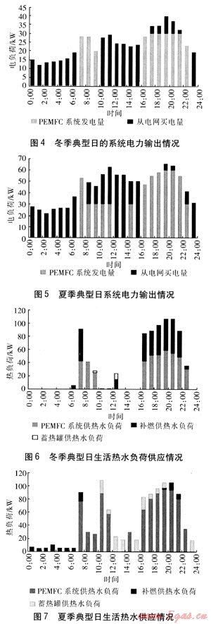 ① 對(duì)于PEMFC建筑熱電聯(lián)供系統(tǒng),采用靈活的運(yùn)行方式,系統(tǒng)可以在很大程度上滿足用戶的電和熱水需求。