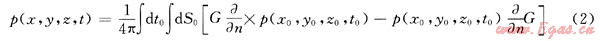 式中:p(x,y,z,t)為閉合曲面S0上某個觀測點R(x,y,z)處的波場函數(shù)值;p(x0,y0,z0,t0)為閉合曲面S0上某個觀測點R0(z0,y0,z0)處的波場函數(shù)值;n為閉合曲面的外法線方向;G為格林函數(shù)。