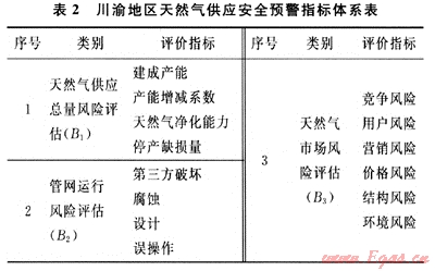 建立了天然氣供應(yīng)安全監(jiān)測(cè)體系,對(duì)可能出現(xiàn)的供應(yīng)危機(jī)做出預(yù)警反應(yīng),構(gòu)建的天然氣供應(yīng)安全預(yù)警指標(biāo)體系如表2所示。