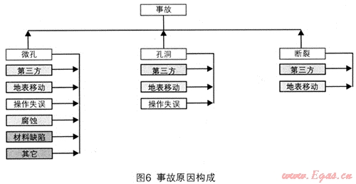 歐洲燃?xì)夤艿朗鹿蕯?shù)據(jù)庫(EGIG),包括丹麥、西班牙、比利時、芬蘭、挪威、法國、德國、意大利、瑞士、英國、捷克、葡萄牙、瑞典、愛爾蘭、奧地利,總計15個國家,總管長約13×104km(管道壓力≥1.5MPa.包括DN 100mm以下的管道)㈣。這個數(shù)據(jù)庫已經(jīng)在世界各地的燃?xì)夤艿腊踩治鲋袕V泛應(yīng)用,對提高管道安全發(fā)揮了作用。