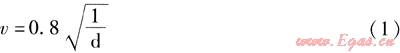 根據(jù)國外實驗得出以下管道燃氣安全流速公式[3]: