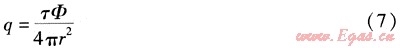 熱輻射通量是距射流軸線距離r處(火災(zāi)危險區(qū)域半徑)的熱輻射強度,它表示距點源一定距離的熱接收量,它與點源輻射量和位置有關(guān)。