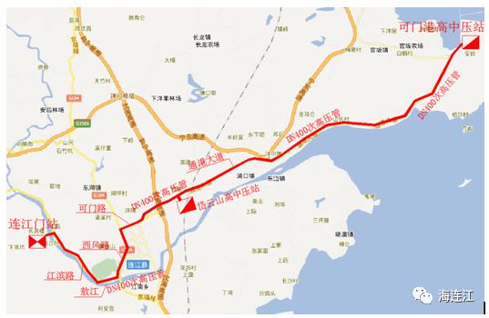 規(guī)劃的次高壓管道路由為:天然氣橫槎-連沙門站(連江門站)——敖江北岸江濱路北——西鳳路閘道——西鳳路——可門路——通港大道——可門高中壓站,全長約33.2km。