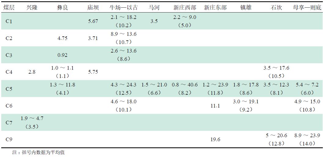 表1 鎮(zhèn)威煤田可采煤層含氣量統(tǒng)計(jì)表
