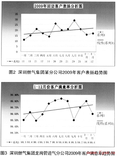 表1 深圳燃氣集團龍崗管道氣分公司2009年營業(yè)回訪數(shù)據(jù)分析表