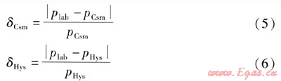 由圖4可以看出,實(shí)驗(yàn)結(jié)果與軟件計(jì)算值及以往的實(shí)驗(yàn)數(shù)據(jù)有很好的一致性。為了進(jìn)一步驗(yàn)證本實(shí)驗(yàn)方法的可靠性,定義δCsm、δHys為實(shí)驗(yàn)數(shù)據(jù)相對(duì)于Csmhyd、Hysys軟件計(jì)算值的相對(duì)誤差,計(jì)算公式如下: