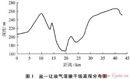 7) 管道沿程地形連綿起伏、高差大?;燧敻删€沿程經(jīng)過4個起伏地段,其中,最大高差達(dá)100m(圖1)。