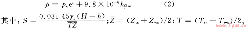 式中:p為井底流動(dòng)壓力,MPa;pc為套壓,MPa;H為井深,m;h為井底積液高度,m;ρw為地層水密度,kg/m3;γg為天然氣相對(duì)密度,無(wú)因次;Tts、Tws為靜止氣柱的井口、井底溫度,K。