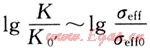 從前面的分析得知低滲透儲層巖石在覆壓實驗中發(fā)生的不是理想線彈性變形,因而按指數(shù)式擬合實驗數(shù)據(jù)相關性不是最佳。為了能更好地利用實驗數(shù)據(jù),并將其與油氣藏工程相結合,筆者提出一種新的應力敏感評價指標表征低滲透巖樣滲透率與有效覆壓的關系[10~11]: