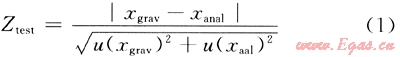 式中xgrav為稱量法測定的摩爾分數(shù)(預(yù)賦值);xanal為分析方法測定的摩爾分數(shù);u(xgrav)為稱量值的標準不確定度;u(xanal)為分析值的標準不確定度。