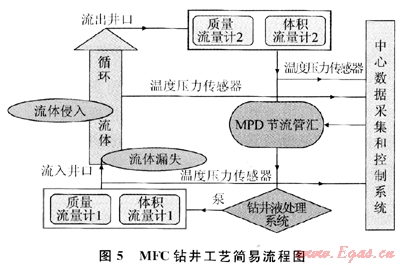 值得注意的是:比較圖4與圖5可以看出,注入時MFC鉆井技術應用了先進的質(zhì)量流量計與體積流量計,它們比出口的質(zhì)量流量計和體積流量計要先進,這也是實現(xiàn)微流量控制的一個重要配置。