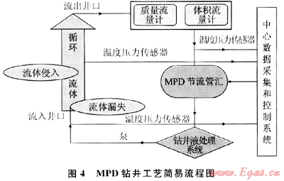 MFC鉆井是通過監(jiān)測微進口流量或出口流量,來實現(xiàn)監(jiān)測鉆井液總流量的微小波動范圍,也是一種精確確定孔隙壓力與破裂壓力的鉆井方法。探測到小的流失與侵入,然后通過一定的方法來調(diào)整返回流量(通過回壓泵與節(jié)流閥的共同作用或只調(diào)節(jié)節(jié)流閥來實現(xiàn)),結果使井底壓力平衡地層壓力。