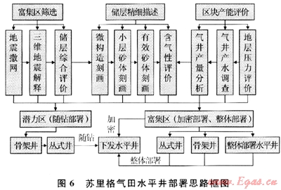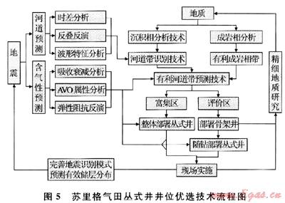 第三,依據(jù)區(qū)帶特征,開展針對(duì)性研究,進(jìn)一步落實(shí)富集區(qū):①蘇里格中區(qū)——將高精度二維地震和有限的三維地震資料相結(jié)合,預(yù)測(cè)砂巖厚度及含氣性;描述河道砂體展布范圍,刻畫有效儲(chǔ)層分布特征,進(jìn)行相對(duì)富集區(qū)篩選;②蘇里格東區(qū)——在分析開發(fā)井的基礎(chǔ)上,靜態(tài)與動(dòng)態(tài)結(jié)合,對(duì)盒8段、山1段和下古生界進(jìn)行再認(rèn)識(shí),上、下古生界綜合考慮,落實(shí)富集區(qū);③蘇里格氣田西區(qū)——深化地層水分布規(guī)律研究,綜合應(yīng)用地質(zhì)、測(cè)井、測(cè)試、地層水分析及生產(chǎn)動(dòng)態(tài)等資料,多學(xué)科交叉滲透,在統(tǒng)一的技術(shù)思路下對(duì)蘇里格氣田西區(qū)氣水關(guān)系進(jìn)行一體化研究,通過“避水找氣”,落實(shí)富集區(qū)。