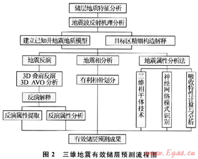 其次,重點(diǎn)區(qū)實(shí)施三維地震、強(qiáng)化儲(chǔ)層預(yù)測(cè)。在二維地震選區(qū)基礎(chǔ)上,優(yōu)選潛力區(qū)開展三維地震。充分利用三維資料信息量大、地質(zhì)內(nèi)涵豐富的優(yōu)勢(shì),以主河道帶預(yù)測(cè)為基礎(chǔ),以有效儲(chǔ)層預(yù)測(cè)為核心,以疊前技術(shù)為主,以疊后技術(shù)為輔;進(jìn)行主河道帶預(yù)測(cè)、儲(chǔ)層及含氣性預(yù)測(cè),并利用三維可視化手段對(duì)儲(chǔ)層及有效儲(chǔ)層進(jìn)行精細(xì)刻畫;最后通過綜合評(píng)價(jià)優(yōu)選高產(chǎn)富集分布區(qū)(圖2)。