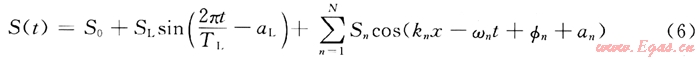 使用描述波浪的郎格-赫金斯(Longuet-Higgins)模型,波浪可由若干個不同周期、不同波高、不同相位角的簡單余弦波進(jìn)行線性疊加來模擬。長峰波浪可以表示為: