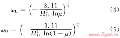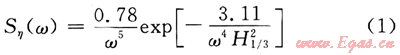 式中Sη(ω)表示P-M單邊譜密度;叫表示圓頻率,1/s;H1/3為有效波高(即波浪總數(shù)中1/3的最高波浪的平均波高),m。