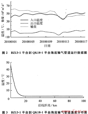 由圖3可知,從BZ13-1平臺(tái)到QK18-1平臺(tái)海底輸氣管道的天然氣溫度下降迅速,在大約10km處就基本接近海水溫度。渤西上岸輸氣管道也有類似的規(guī)律。