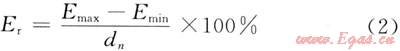 式中Emax和Emin分別為規(guī)定流量下,測量示值相對誤差的最大值和最小值;dn為極差系數(當測量次數n=3時,dn=1.69)。