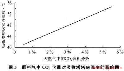 3.2 C02含量對(duì)吸收塔溫度的影響
