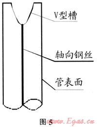 管口毛刺、翻邊清理完成后,為防止碰頭完成后天然氣沿骨架與PE材料之間空隙竄動而損傷管道本體,需對斷口管壁開槽、填料進(jìn)行封堵,用砂輪機將斷口管壁磨成V形或U形(如圖5),采用與復(fù)合管母材相同材質(zhì)的PE焊條用熱風(fēng)機同時加熱母材與焊條,當(dāng)焊條與母材融化發(fā)軟時,將焊條壓入V形槽,注意須先將焊條氧化層打磨掉,封堵應(yīng)將骨架完全覆蓋。在開槽時會有火花及粒狀或粉狀PE材料飛濺,施工人員應(yīng)佩帶好防塵護具。