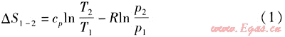 等熵膨脹過程中△S1-2=0,則膨脹后的氣體溫度為: