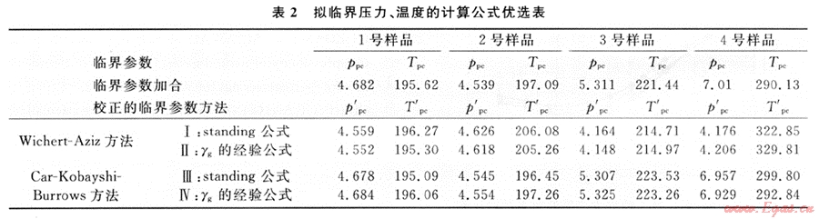 2.1 擬臨界參數(shù)的計算[4~5]