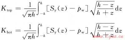 裂縫高度延伸的強(qiáng)度因子計(jì)算式為: