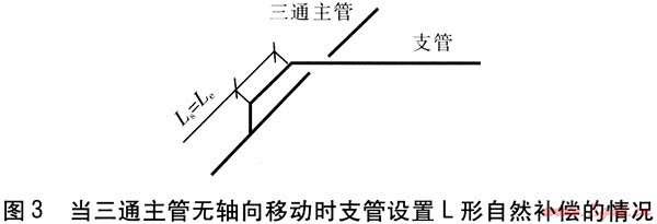 ② 當(dāng)三通主管允許有軸向位移時(shí),三通主管的軸向位移將使支管產(chǎn)生側(cè)向位移,此時(shí)應(yīng)控制三通到主管補(bǔ)償裝置的距離,保證三通處主管的最大軸向位移不大于50mm。三通處主管的最大軸向位移smax的計(jì)算式為: