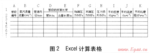 雖然蒸汽管網(wǎng)的水力計(jì)算不涉及復(fù)雜的數(shù)學(xué)理論,但其計(jì)算的重復(fù)性及參數(shù)的頻繁調(diào)整給手工計(jì)算帶來(lái)了諸多不便。因此,推導(dǎo)出適合工程計(jì)算的數(shù)學(xué)計(jì)算式,制作出科學(xué)的Excel計(jì)算表格,有利于提高工程設(shè)計(jì)的效率和準(zhǔn)確度。