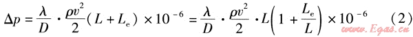 式中Le——計(jì)算管段局部阻力當(dāng)量長(zhǎng)度,m