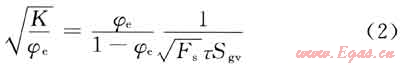 式中K為滲透率,mD;φe為有效孔隙度,小數(shù);Fsτ2為Kozeny常數(shù);Sgv為單位顆粒體積比表面,μm-1。