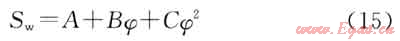 4) 利用測(cè)井計(jì)算的孔隙度,根據(jù)低侵巖心分析的含水飽和度和孔隙度二項(xiàng)式回歸公式計(jì)算,其公式為: