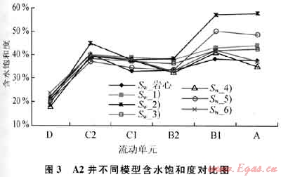 常規(guī)電法測(cè)井計(jì)算的全氣田的含水飽和度約為36%,而按照流動(dòng)單元建立的模型6)計(jì)算含水飽和度約為29%,地質(zhì)儲(chǔ)量差異約80×108m3。