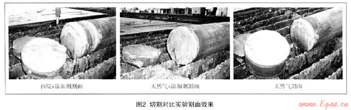 實(shí)驗(yàn)結(jié)論:純天然氣可應(yīng)用于一般生產(chǎn)工藝切割普鋼和部分特鋼,不需要混合添加劑也能達(dá)到滿意的割面效果,割速與丙烷相當(dāng);采用增效丙烷氣、增效天然氣的割面效果及切割速度與純天然氣基本相當(dāng),增效天然氣沒有突出的優(yōu)勢(shì)。[5]