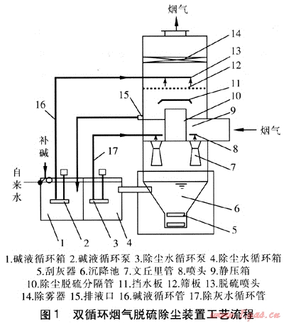 1 雙循環(huán)煙氣脫硫除塵機理